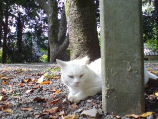 哲学の道で思案にくれる白
